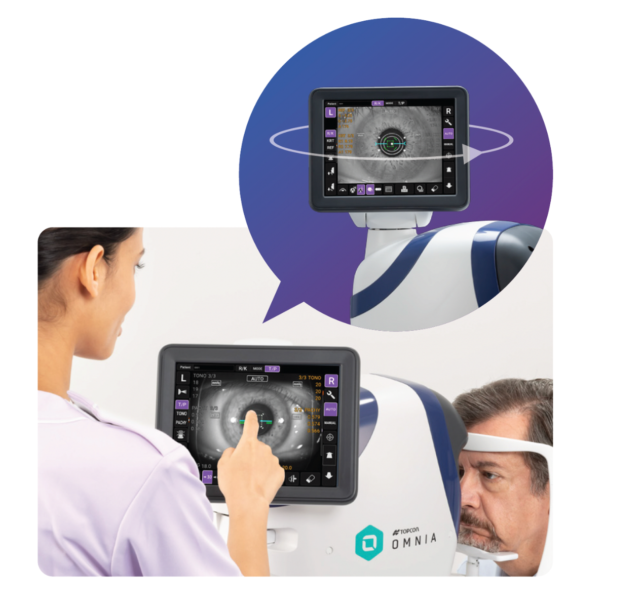 - ADVANCED ROTARY PRISM TECHNOLOGY: With Topcon’s Rotary Prism technology, OMNIA provides stable measurements. The unique, eccentric rotation of the measurement ring is designed to reduce artifact from the fundus.